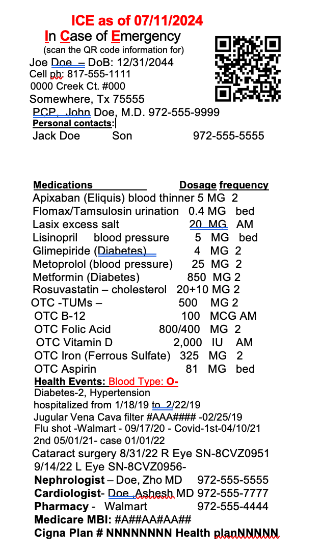 Click on the above QR code to see how this information will provide emergency medical personnel with the patient's medical conditions, medication, people that should be contacted, etc. that will help
